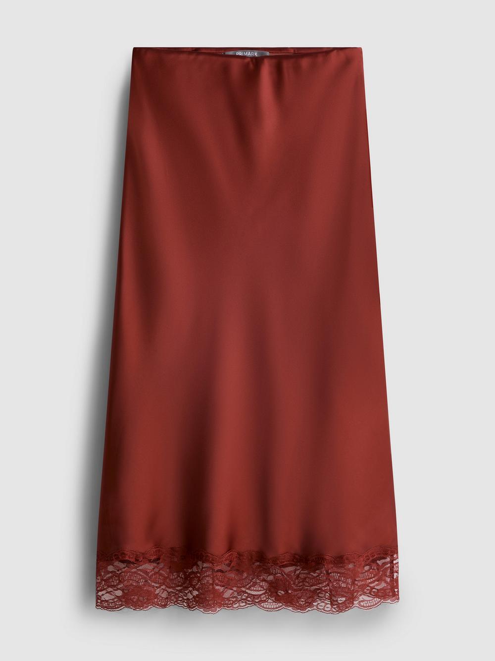 Satin Lace Midi Skirt